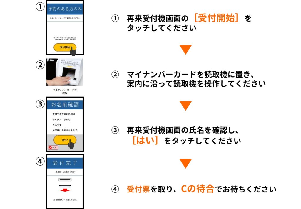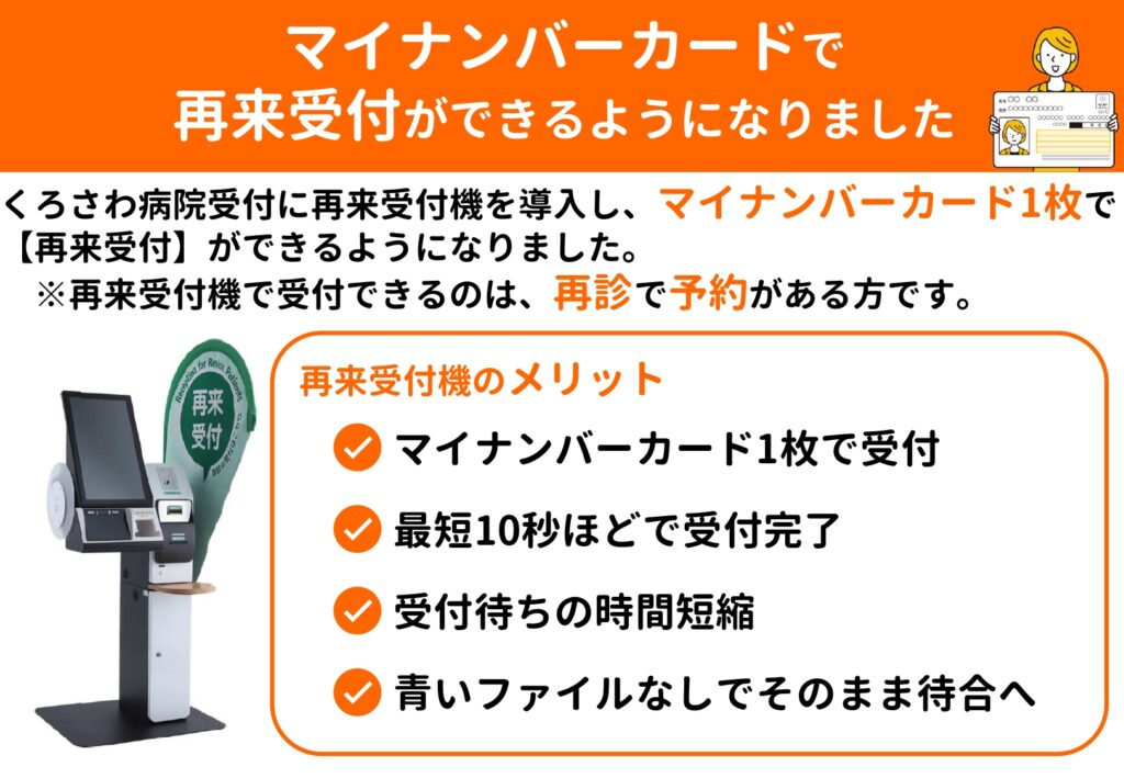 当院では、患者様に受付をよりスムーズに行っていただくため、自動再来受付機を導入いたしました。