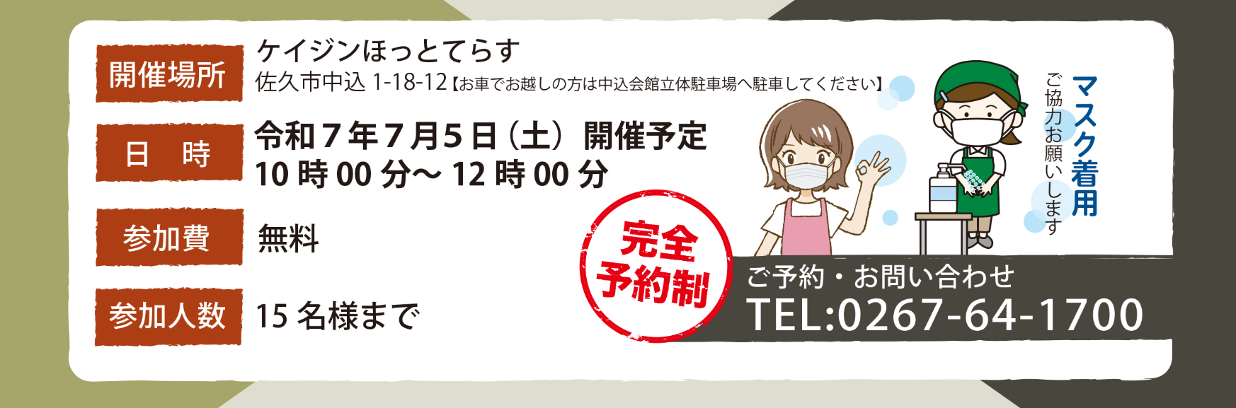 今回は7/5(土)開催の認知症サポーター養成講座のご案内です。
