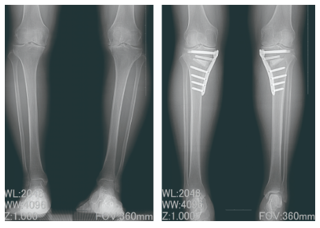 高位脛骨骨切り術(HTO手術)とは、脚の形をO脚からX脚に変える手術で、内側に曲がっている脚を、自分の骨を切って角度を変えることで、反対の外側に移動させます。骨が癒合するまで多少痛みがあったり、リハビリをしっかり行う必要がありますが、自分の関節を温存し、機能を維持することができるため、術後の日常生活の制限が比較的少なくなります。